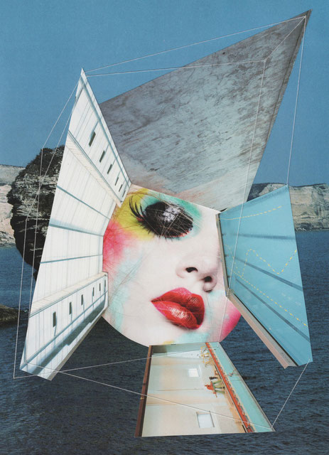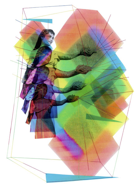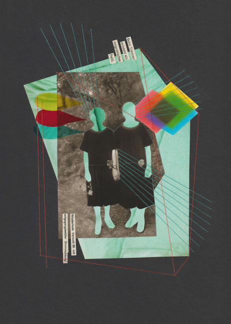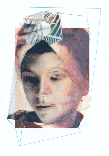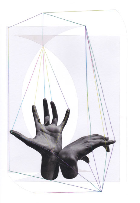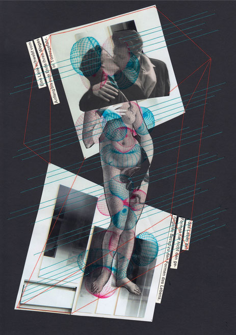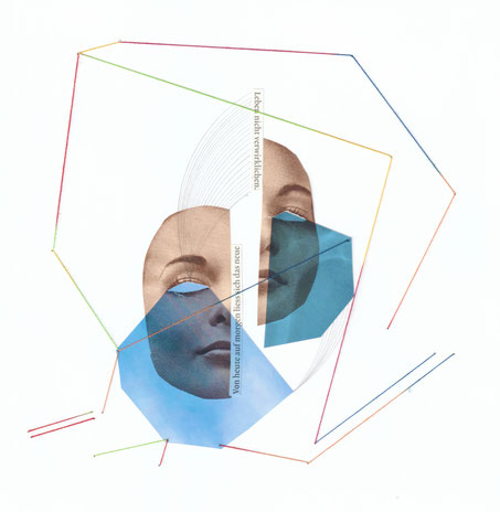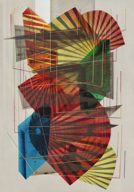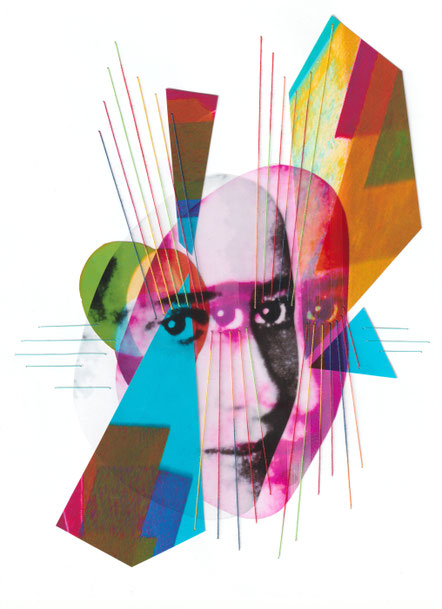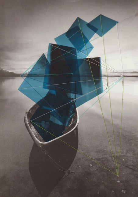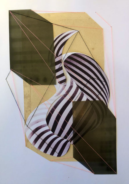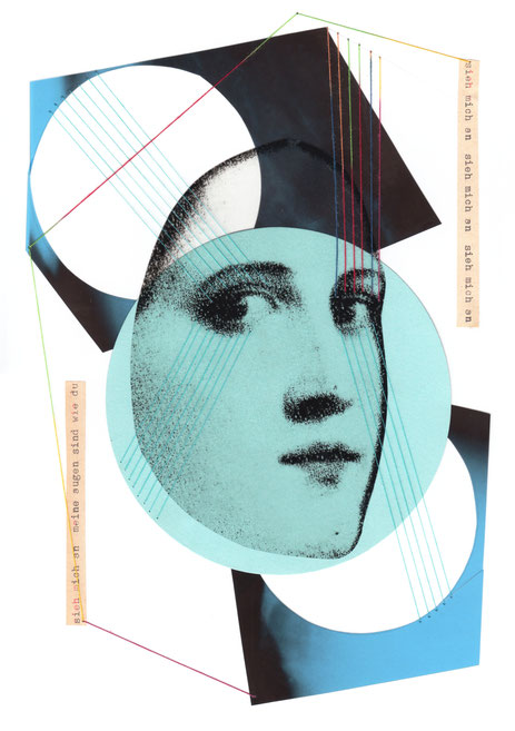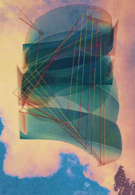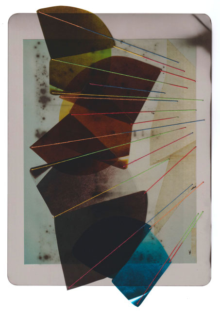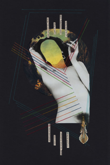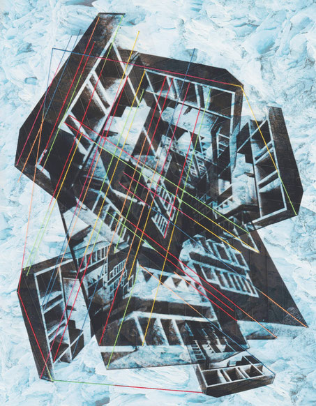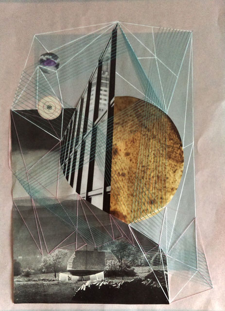 Collagenmischtechnik ( Garn, zerschnittene Fotografie von Sebastian Mayer ) auf Karton