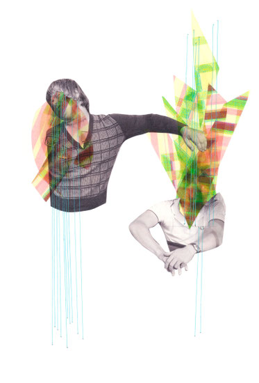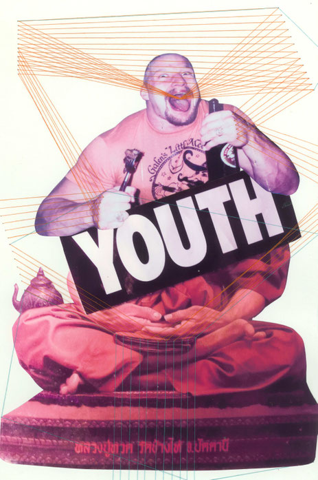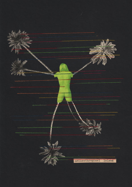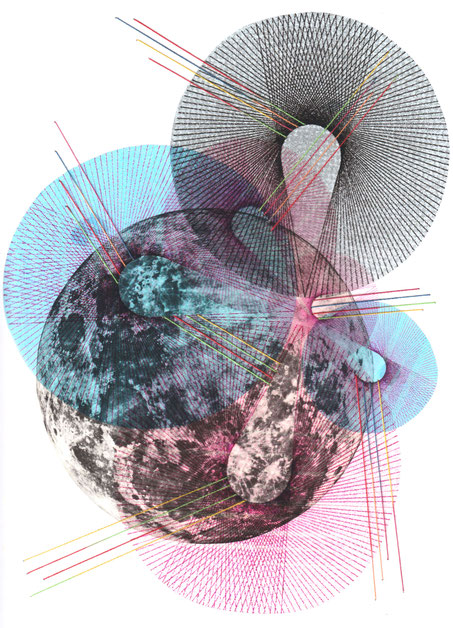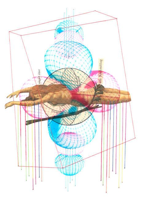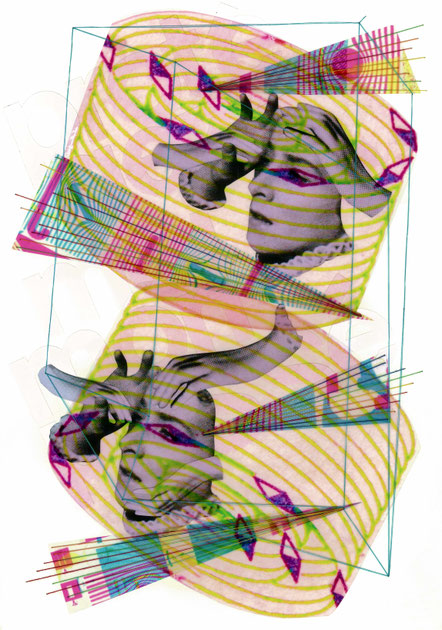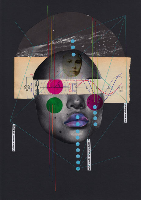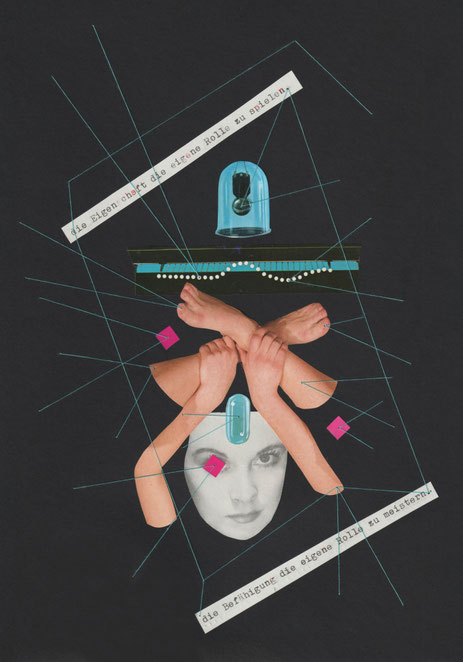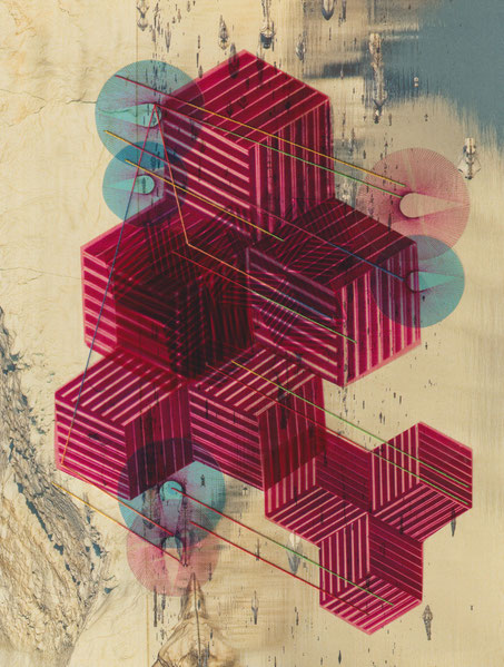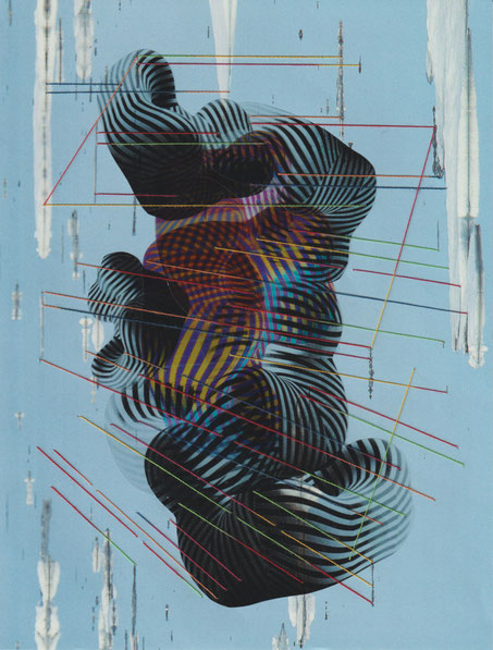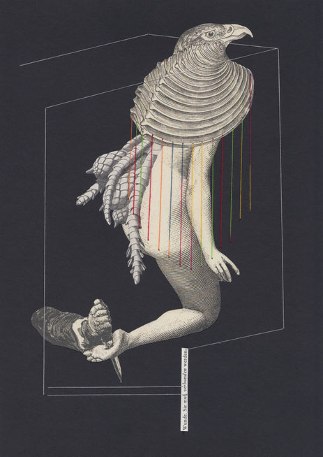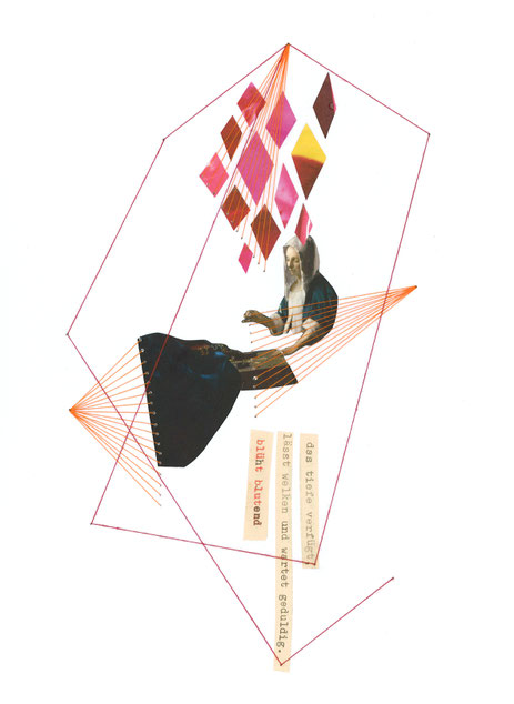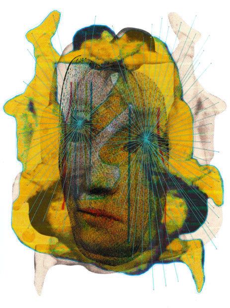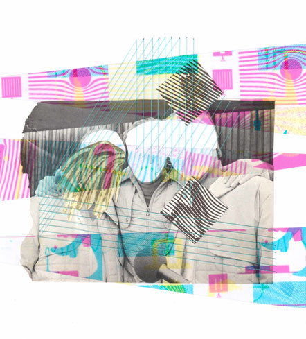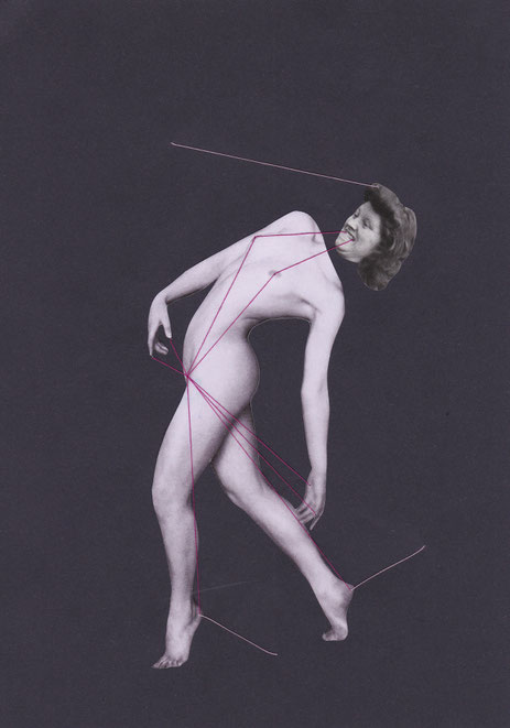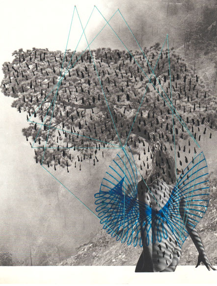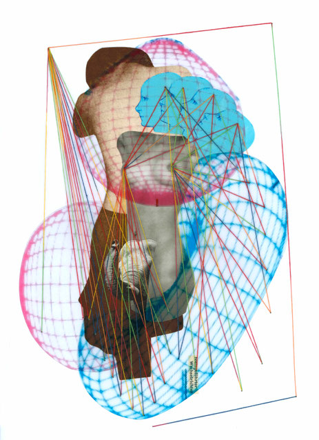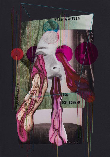 Collagenmischtechnik ( Garn, zerschnittene Fotografie von Sebastian Mayer ) auf Karton