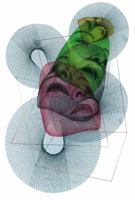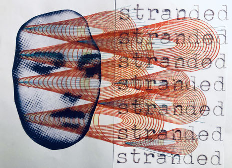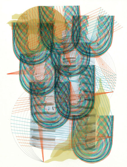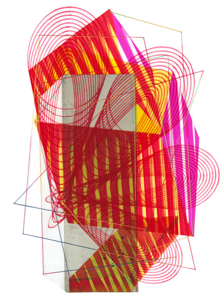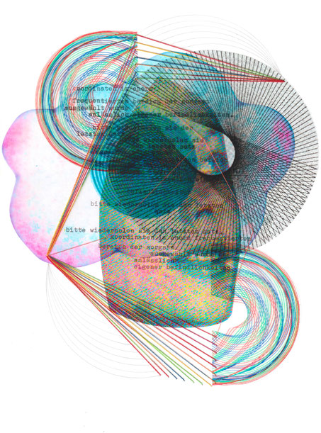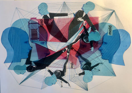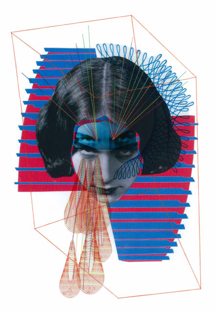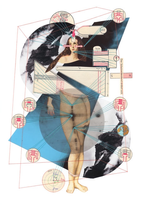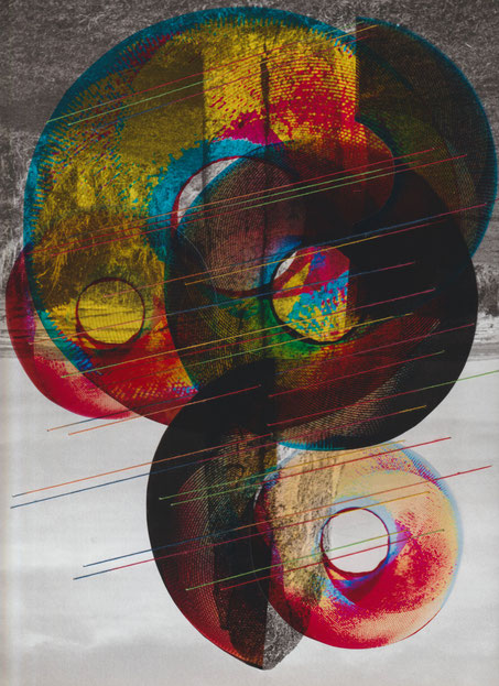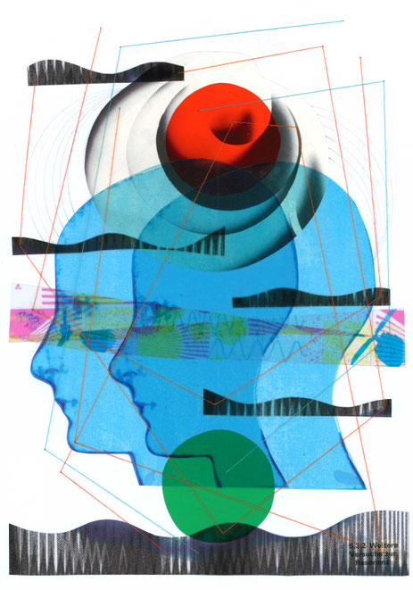Collagenmischtechnik ( Garn, Folie, Maschinenkonstruktionsplan ) auf Bremer Druck