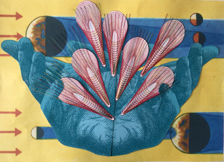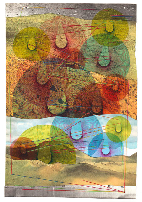 Collagenmischtechnik (Papier, Goldgarn, Folie ) auf Fotografie von Sebastian Mayer