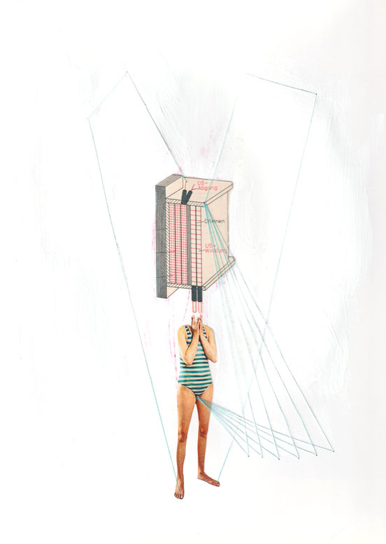 Collagenmischtechnik ( Garn, Papier ) auf Papier