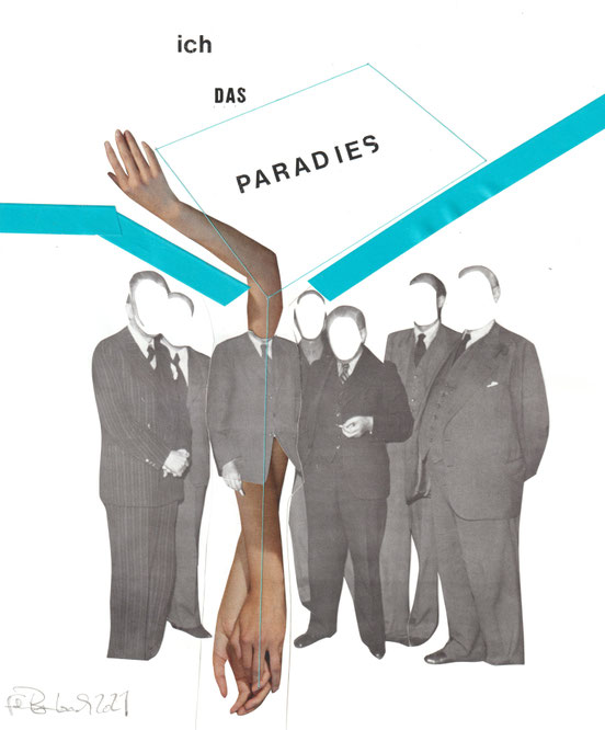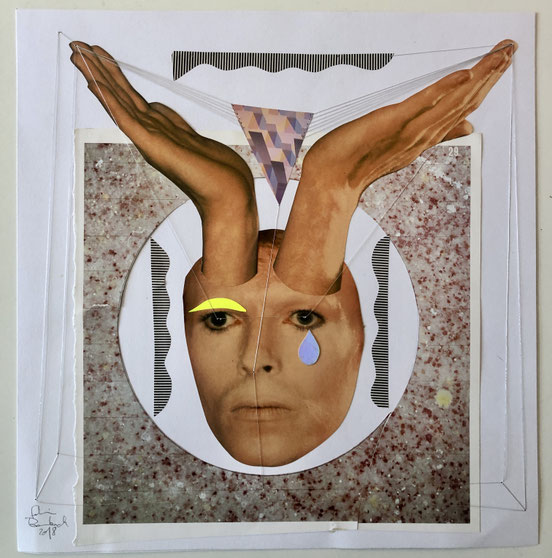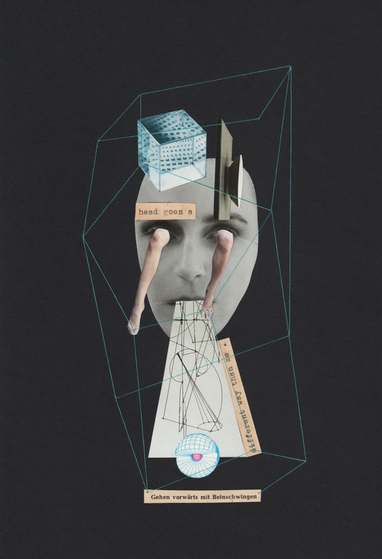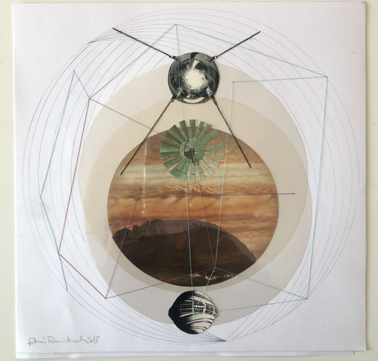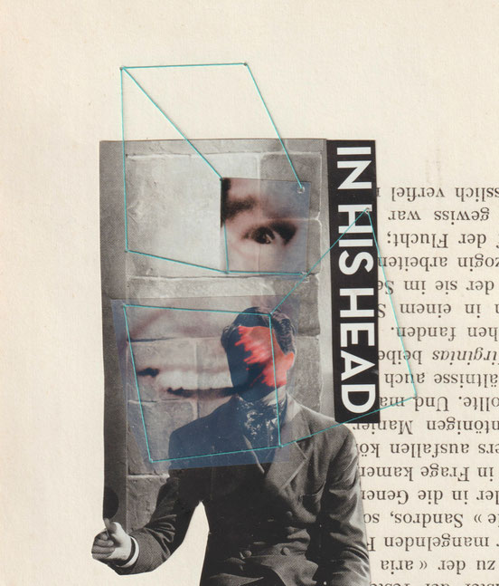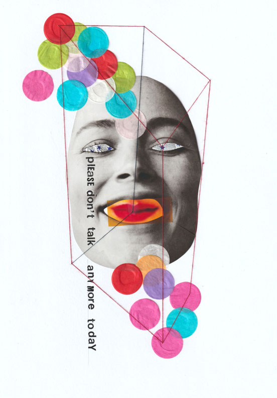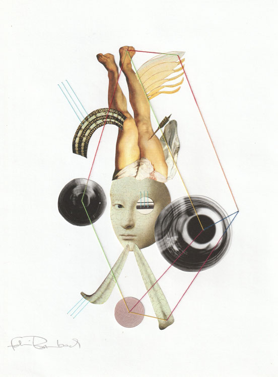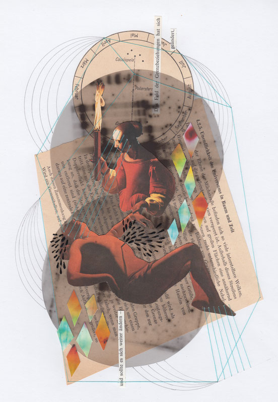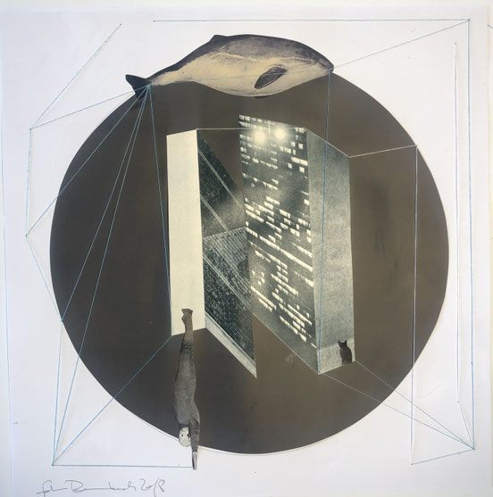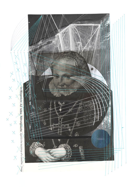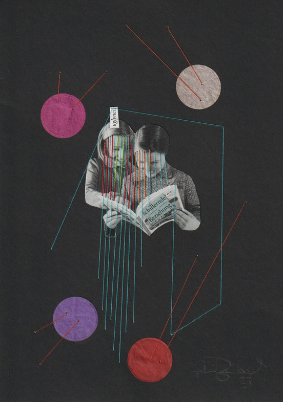 Collagenmischtechnik ( Garn, Papier, Folie ) auf Papier